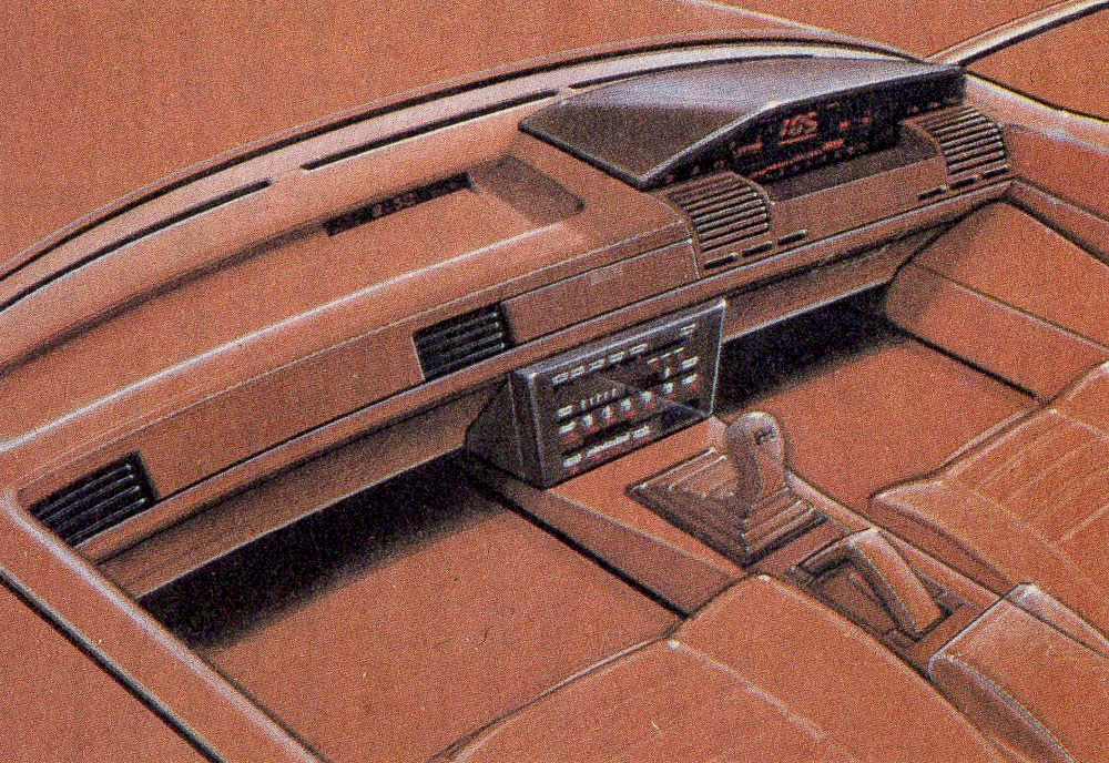 Anyway, the initial idea was to surround the human body with soft padding. As shown in the early clay model, a strip of padding connects the dashboard to the door trim. The ultimate goal was to go instrument panel-less, with only the necessary meters fitted, and we wanted to make the meter hood as inconspicuous as possible.