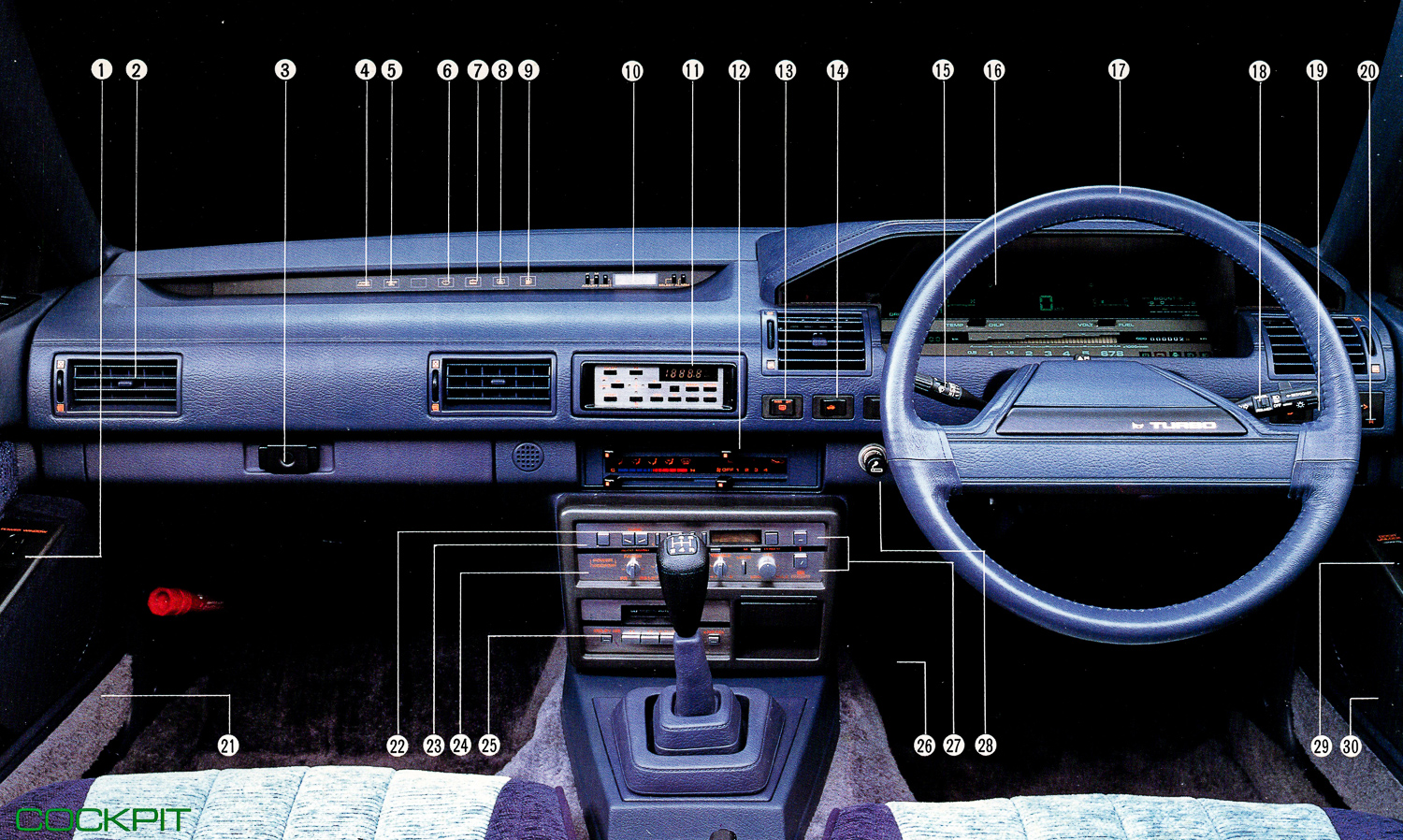 I addition to a diversity receiving system, electronic tuner, cassette deck, and four rear two-way speakers, it also features the world's first power woofer that utilizes a pole on the rear parcel shelf, allowing you to enjoy dynamic sound.