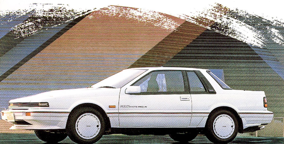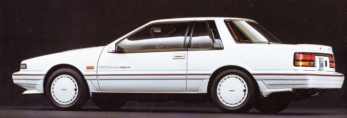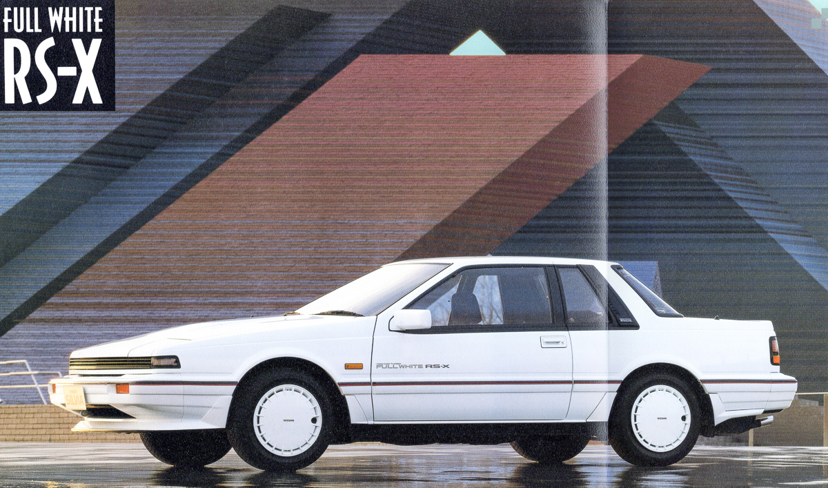 The Twin Cam Turbo Full White RS-X is the flagship model of the new white versions. With the all-white paint split by a sporty red and grey belt-line and special decals on the doors, the Full White RS-X is a new look for the Silvia range. Equipped with the PLASMA-CA18DET and an all new interior and sound system, Nissan presented this model as the sportiest and most comfortable Silvia in their line-up.