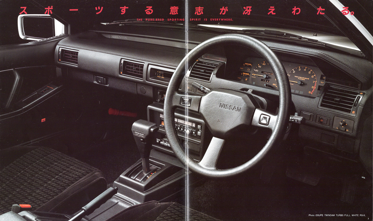 This form shines vividly in the light. The interior has been upgraded, and uses fine quality double Russell cloth for the seating. Moreover, it includes JBL speakers and cassette deck, a powerful electronic tuner and a full audio system.Nissan Silvia Brochure