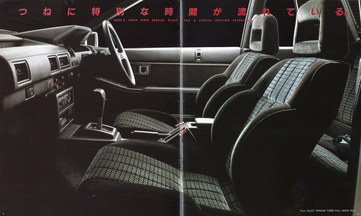 This form shines vividly in the light. The interior has been upgraded, and uses fine quality double Russell cloth for the seating. Moreover, it includes JBL speakers and cassette deck, a powerful electronic tuner and a full audio system.Nissan Silvia Brochure