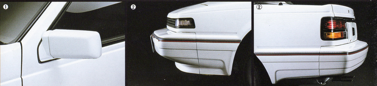 The Twin Cam Turbo Full White RS-X is the flagship model of the new white versions. With the all-white paint split by a sporty red and grey belt-line and special decals on the doors, the Full White RS-X is a new look for the Silvia range. Equipped with the PLASMA-CA18DET and an all new interior and sound system, Nissan presented this model as the sportiest and most comfortable Silvia in their line-up.